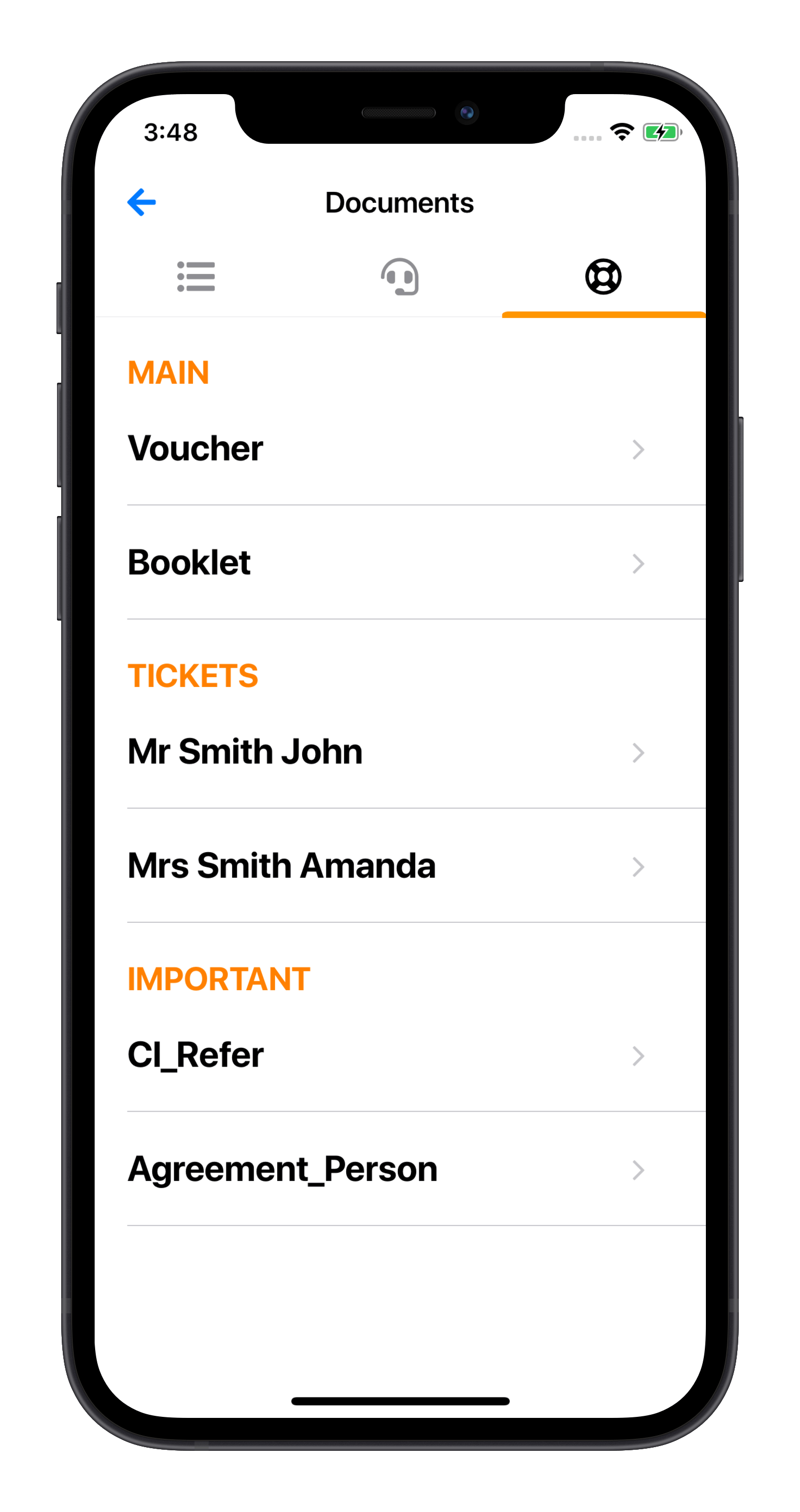 Voucher and tickets at hand