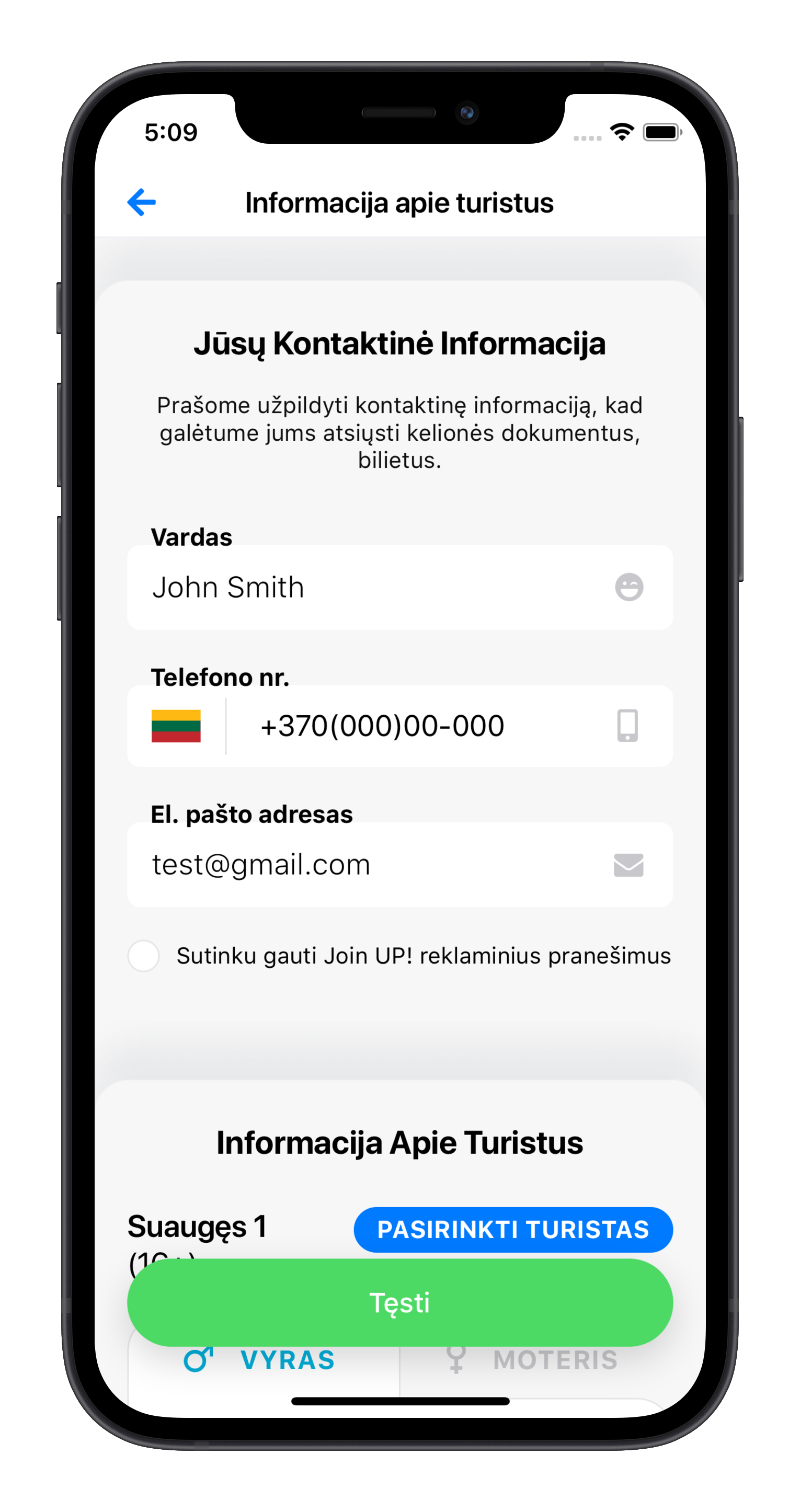 Tai galite padaryti patys - programėlėje įvesdami keliautojų duomenis.