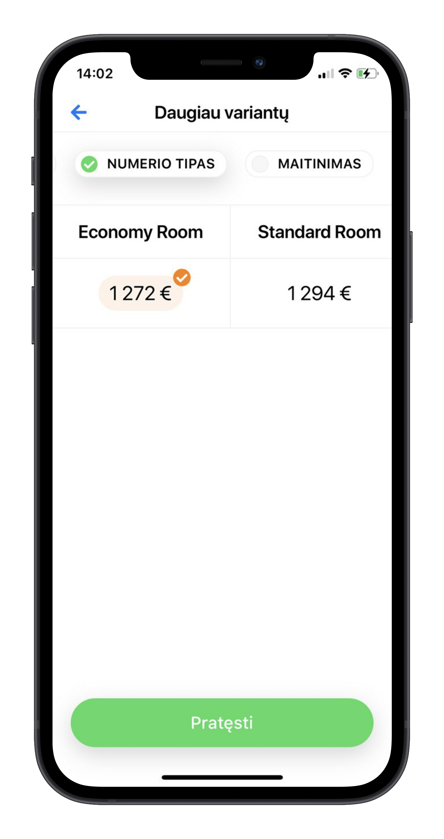 Pasirinkite jums reikalingas viešbučio paslaugas.