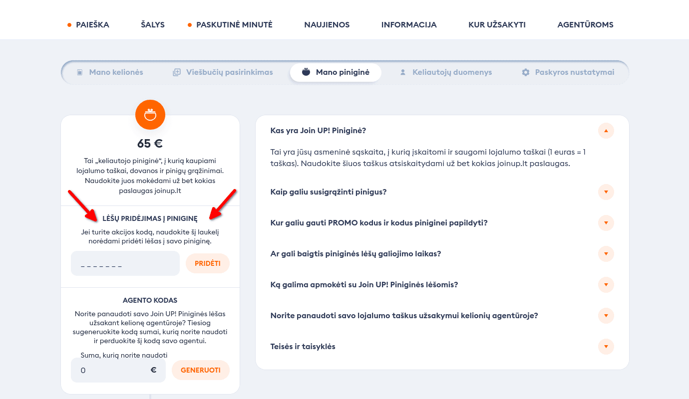 Join UP! piniginė – tai jūsų asmeninė kelionių taupyklė, kurioje kaupiamos premijos už keliones ir rekomendacijas draugams. Kuo daugiau keliaujate ir dalijatės įkvėpimu – tuo daugiau naudos sukaupiate!